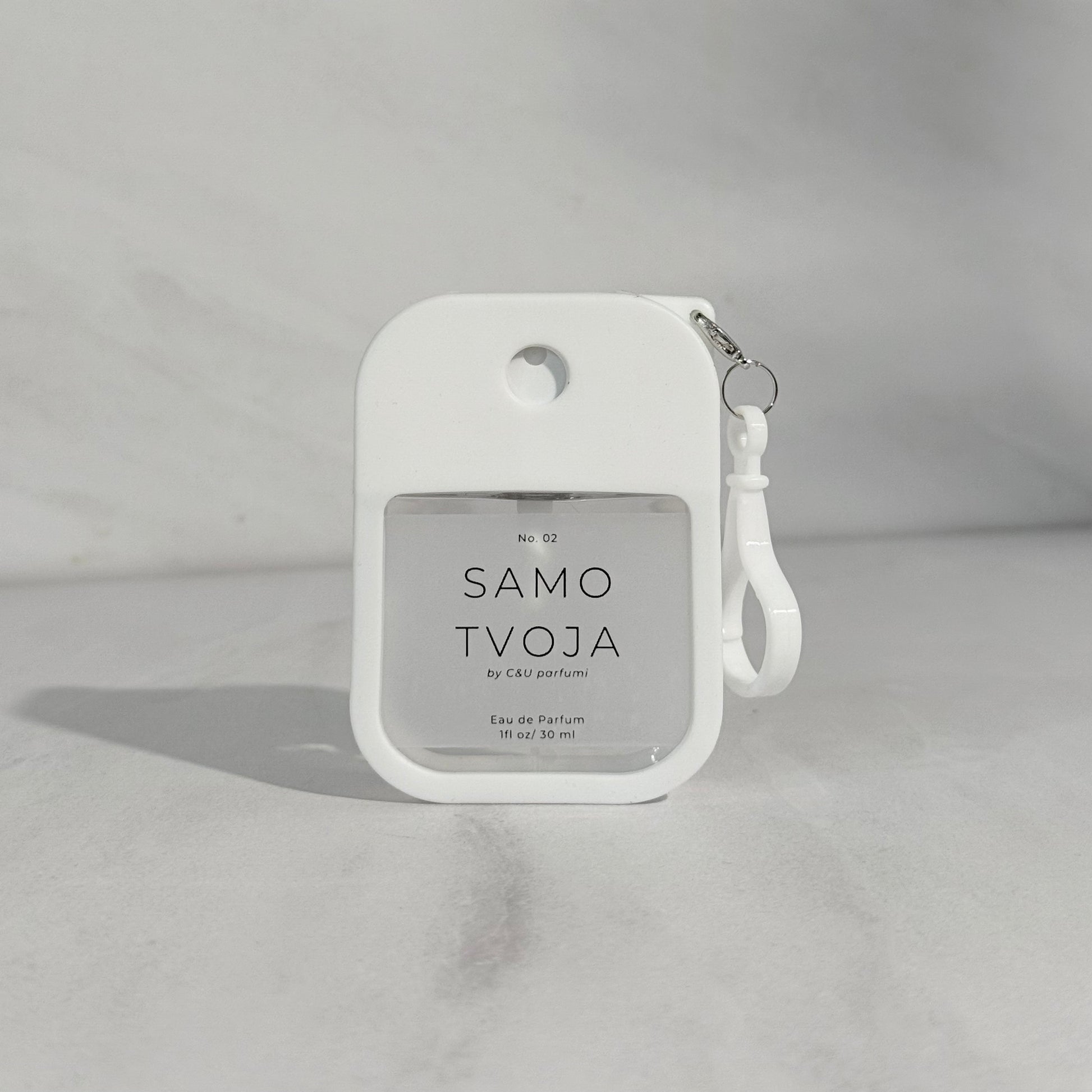 Minimalistična steklenička v zaščitnem ohišju z obeskom, ki se po želji tudi sname. Vedno elegantna in pripravljena, da tvoj najljubši parfum vzameš s seboj, v torbici, žepu ali na poti.