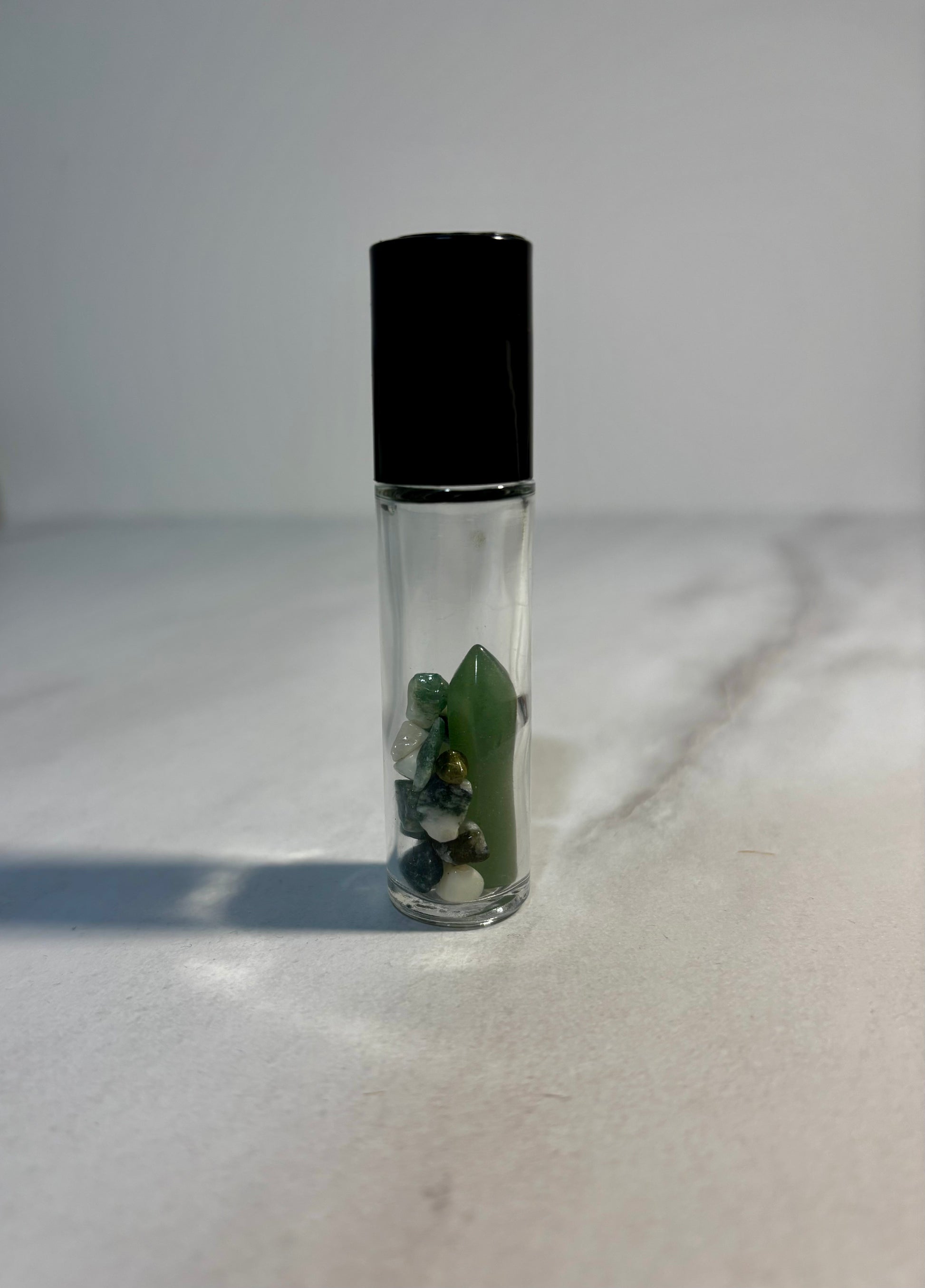 1x 9ml ženski parfum na roll-on s kristali mahovnega ahata in špic zelenega aventurina. Zapakirano v škatlici in je primerno tudi za darilo.